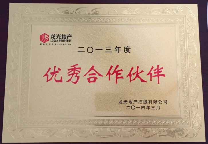 龍光地產控股有限公司2013年度優(yōu)秀合作伙伴